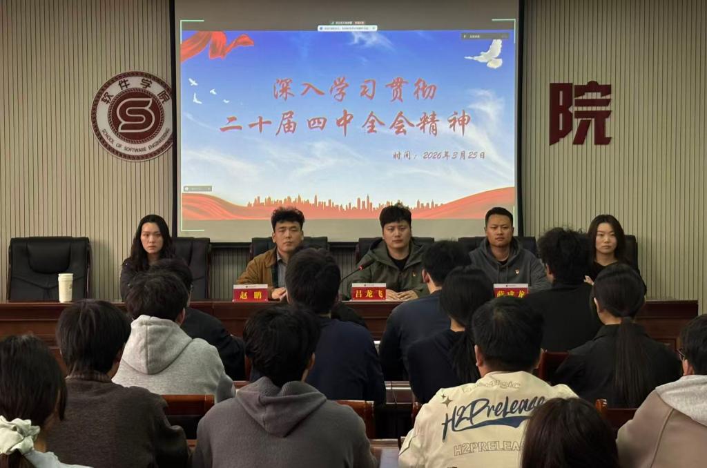 3月25日下午,软件学院学生第一党支部在教学楼202会议室举办党的二十届四中全会精神专题学习培训。支部书记吕龙飞,副书记赵鹏,组织委员兼纪检委员薛成龙,宣传委员段凤杰,以及梁安阁老师出席活动,支部全体学生党员参加培训。