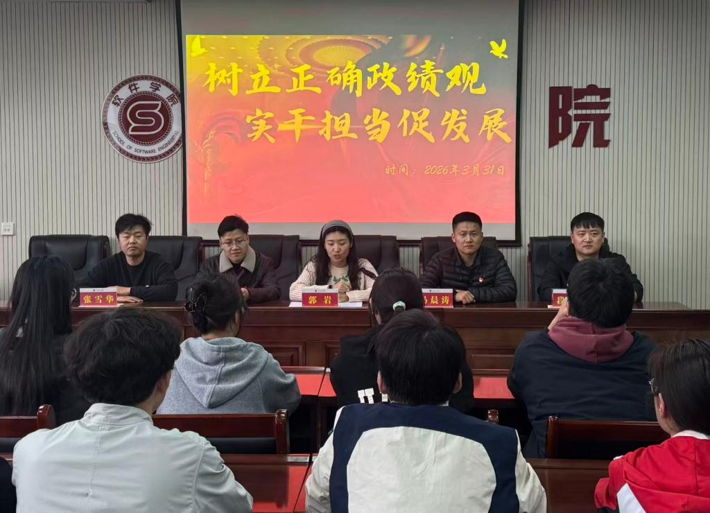 3月31日下午,软件学院学生第二党支部于教学楼202会议室开展“树牢正确政绩观,实干担当促发展”主题党日活动。软件学院学生第二党支部书记郭岩,学生第二党支部副书记兼纪检委员侯勃宇,学生第二党支部组织委员马晨涛,学生第二党支部宣传委员张雪华,2025级辅导员段志文老师出席活动,学生第二党支部全体学生党员参加本次活动。