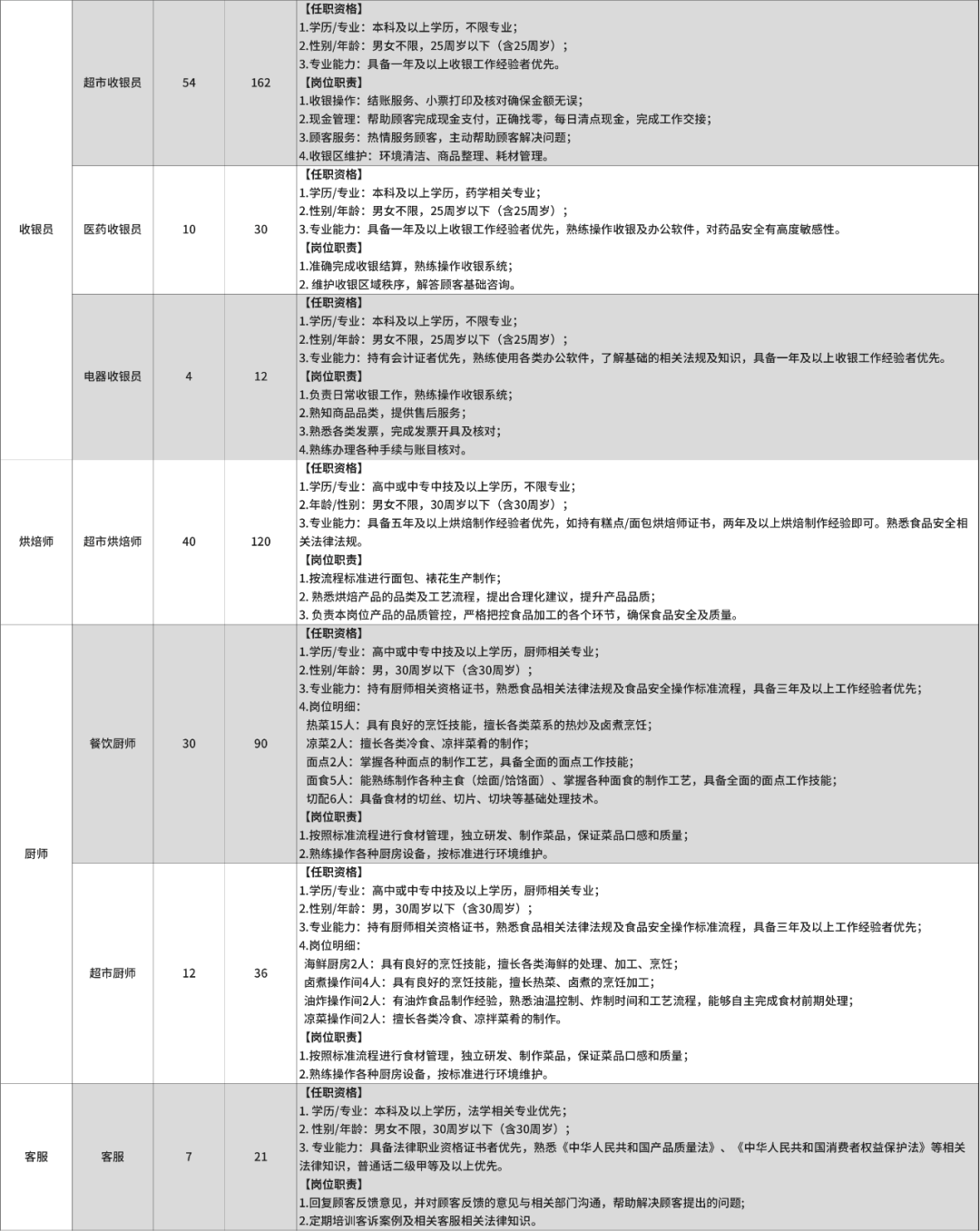 根据新乡胖东来三胖开业所需岗位,现公开招聘热爱并愿意践行和传播胖东来文化理念,希望成就专业价值和自我价值、有梦想的同行者900名。 本次招聘我们将为在新疆、西藏高原艰苦地区对国家做出巨大奉献的退伍边防军人,设置专属投递通道,计划录用200人;同时也为刑释人员设置专属投递通道,计划录用20人,让曾经走过弯路的群体得到尊重和关爱,成为美好生活的创造者与分享者,坚定地共同走向美好!