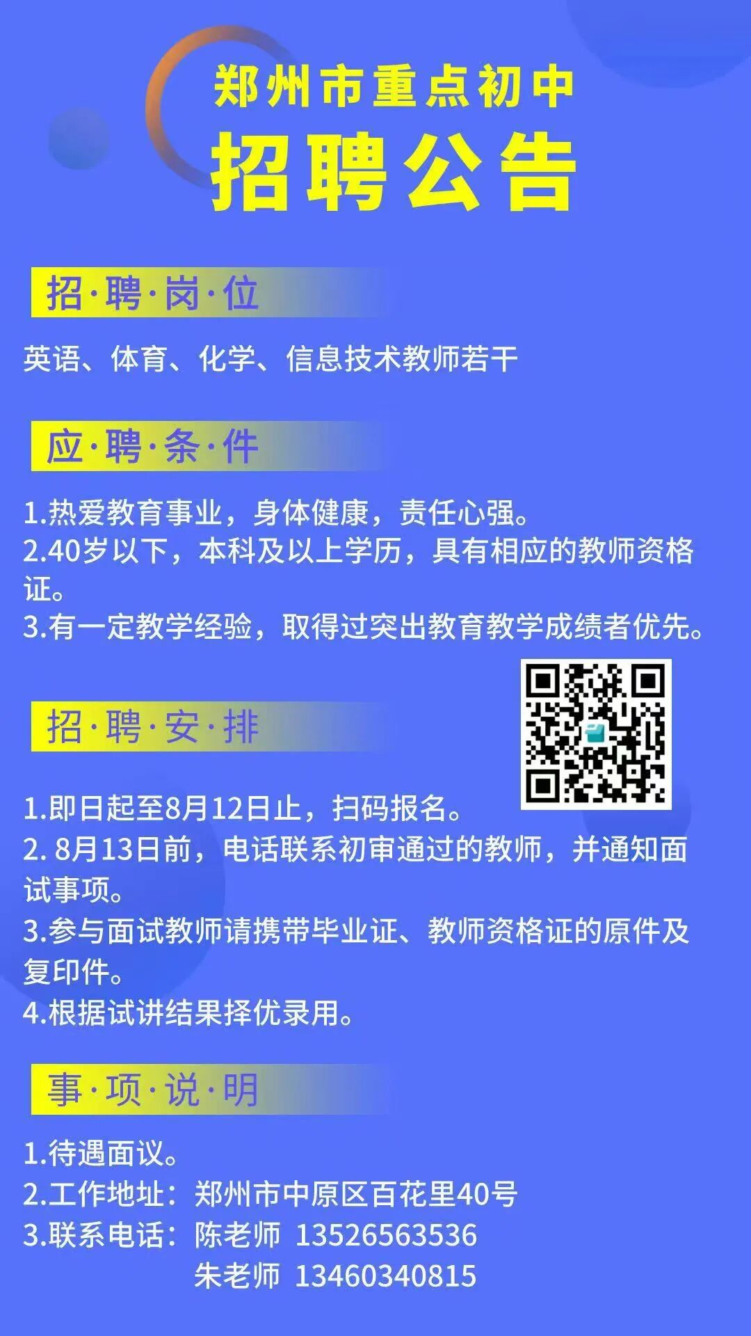郑州市重点初中招聘公告来啦!(至8月12日)