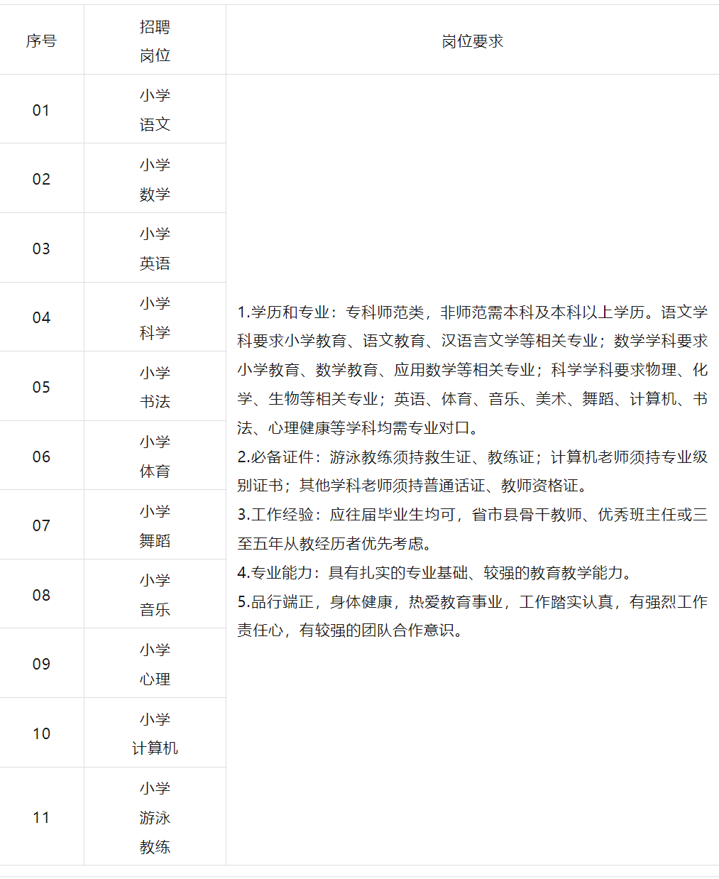 小学部招聘计划