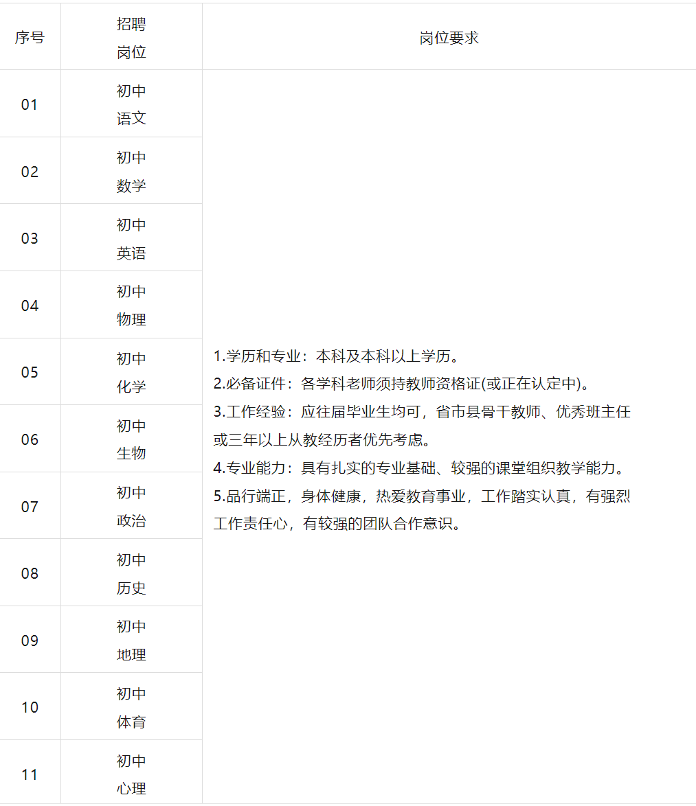初中部招聘计划
