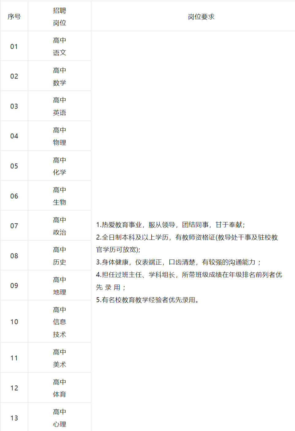 高中部招聘计划