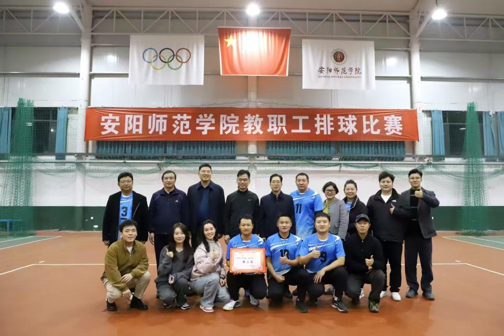 为丰富教职工文体生活,增强团队凝聚力,安阳师范学院于校排球馆举办2025年教职工排球比赛。本次比赛10月27日开赛,经过9天的激烈角逐,11月6日下午,比赛圆满落幕。各院部教职工同台竞技,上演了一场场精彩对决。我院分工会和离退休工作处分工会联队荣获季军。