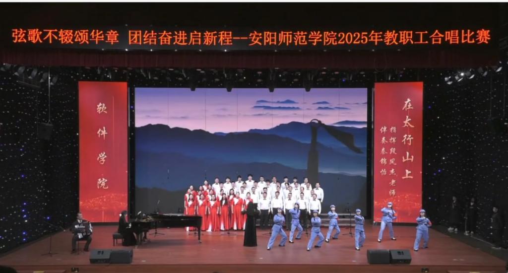为弘扬团结奋斗精神,丰富教职工文化生活,展现学院良好风貌,12月26日下午,安阳师范学院举办2025年教职工合唱比赛。软件学院分工会积极参与,凭借深情演绎的《在太行山上》在全校21支参赛队伍中脱颖而出,荣获二等奖。