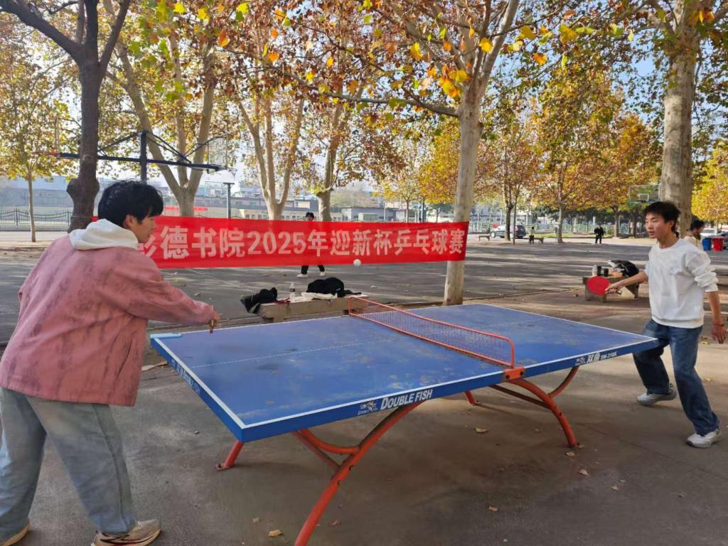 为丰富新生课余生活,增强班级凝聚力,11月15日我院2025年迎新杯乒乓球赛在操场上顺利举行。数名选手齐聚赛场,以球会友,展现了青春昂扬的精神风貌。