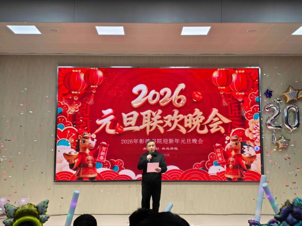 为营造喜迎新年的欢乐氛围,丰富校园文化生活,2025年12月30日晚,彰德书院2026年“青春焕彩·共赴新程”元旦联欢晚会在教学楼阶梯教室110隆重举行。软件学院党委书记杜红芳,软件学院院长王丁磊,互联网+应用技术学院院长李克民,软件学院党委副书记代素娟,软件学院副院长刘凌霞、陈卫军、高国伟,软件学院全体教职工及各年级学生代表欢聚一堂,共迎新年。